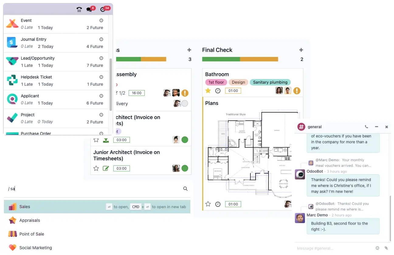 Escala desde 1 hasta 10,000 empleados sin cambiar de sistema. ODOO crece contigo.